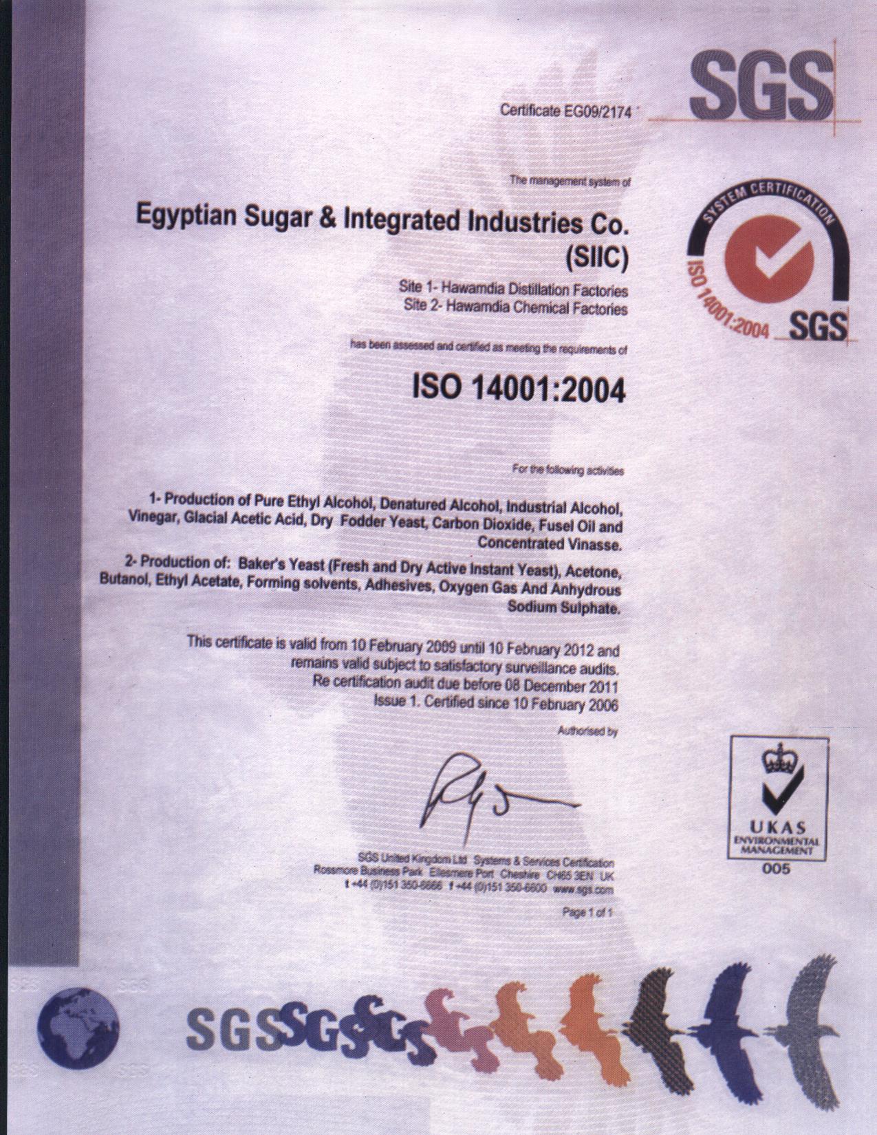 كما أن جميع مصانع وقطاعات شركة السكر والصناعات التكاملية المصرية قد حصلت على شهادات نظم إدارة الصحة والسلامة المهنية OHSAS 18001 في عام 2007م .